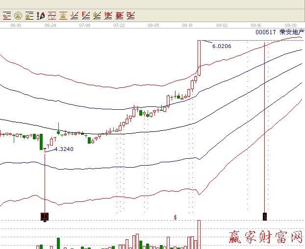 在000517也驗證了這些,可以看到股價突破生命線和藍色上軌線的時候,時間窗口的配合,往往出現(xiàn)了兩次的買點,如果能抓牢了,一個月盈利30%就很輕松能做到了。