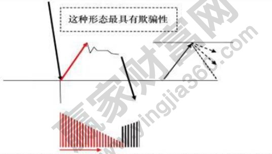 這種形態(tài)往往是具有欺騙性,這種形態(tài)會(huì)被誤認(rèn)為是強(qiáng)勢(shì)上攻形態(tài),一旦出現(xiàn)急速的下跌放量,上攻的行情就會(huì)被徹底瓦解。