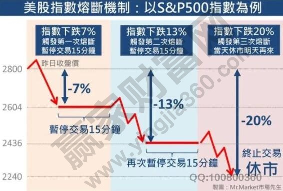 同樣在3月16日的時候,美股三大股指開盤暴跌再次觸發了熔斷機制,停盤了十五分鐘,這就是熔斷機制。