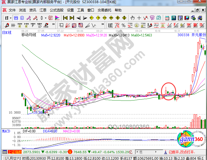 上面是開元股份歷史上的走勢圖,從圖中我們可以看到,股價見底企穩后漸漸向上盤升,經過小幅反彈后股價遇到前期成交密集區域的壓力,從而形成平臺整理走勢,來進一步的消化上方壓力,經過一段時間的整理后,莊家開始向上試盤,以檢驗上方的壓力情況。