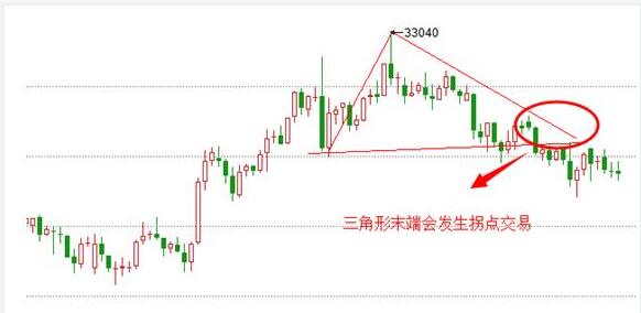 下跌末端以及上漲末端,會有長時間的整理時期,一旦出現三角形,那么會有大概率的突破,激進者可以在第一時間進場做單,那么穩健者可以在行情再次回調或者反抽的時候進場做單。
